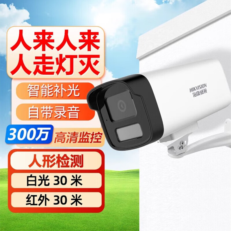 海康威视 200万红外筒型网络摄像机高清红外夜视户外探头手机远程监控器安防设备 DS-IPC-B12HV3-LA/POE