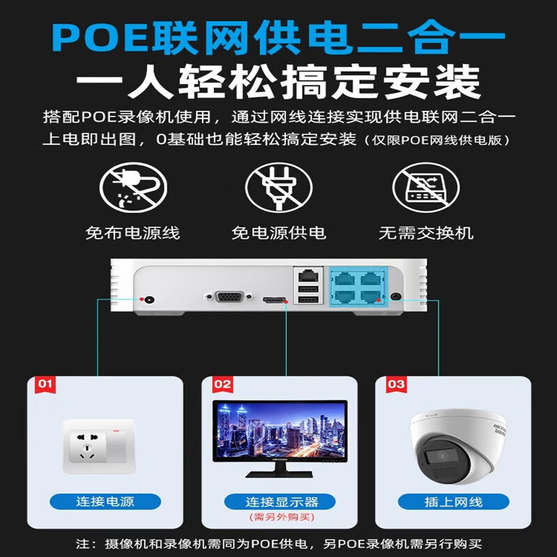 海康威视 臻全彩网络高清600万POE监控摄像头 DS-2CD3T67SWDV3-L