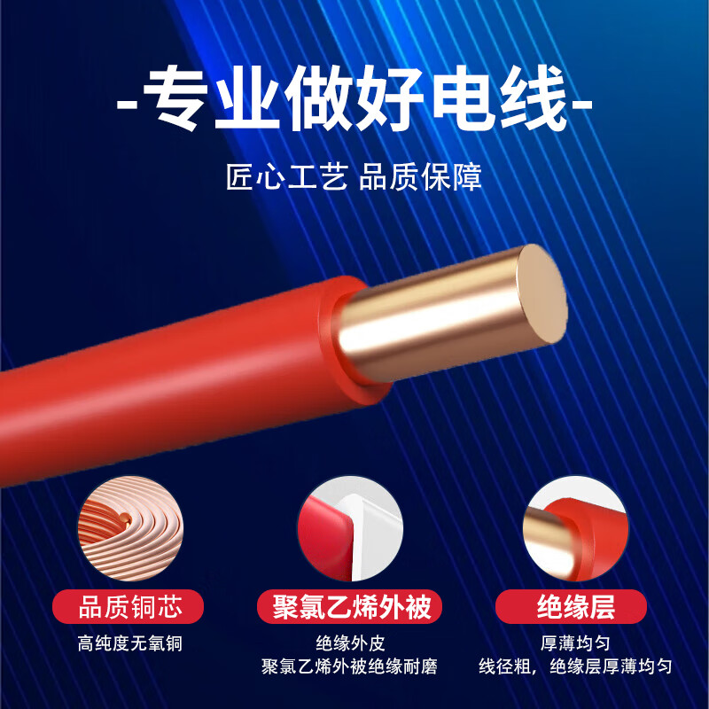 保迪 电线电缆 BV1*4平方450/750V 单芯单股铜芯塑料线 国标照明家装铜芯电线 红色100米