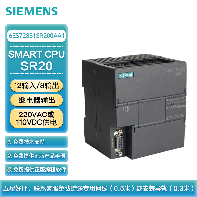 西门子 PLC可编程控制器 S7-200 SMART CPU SR20 标准型CPU 继电器输出 220VAC或110VDC供电 12输入/8输出